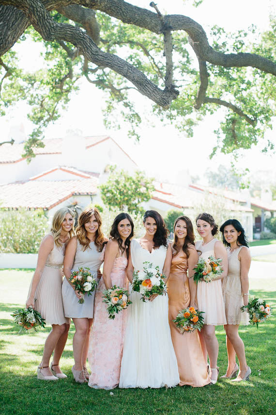 Today’s sweet couple Jen & Jason got married exactly one year after the day they got engaged. Their warm, rustic wedding was the ultimate marriage (really, no pun intended!) of elegant and natural, with an intimate outdoor reception + ceremony, that felt cozy even with 185 in attendance. Plus, it was 100% them – from the hints of peach to the giant oak tree, everything fell into place.