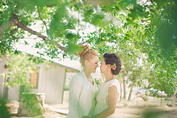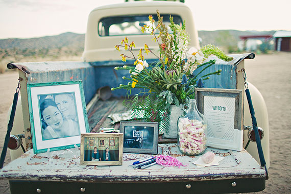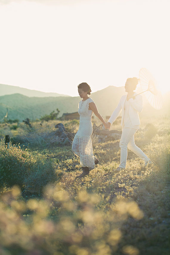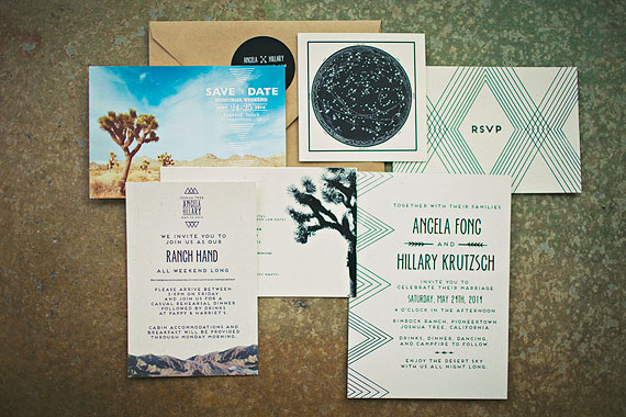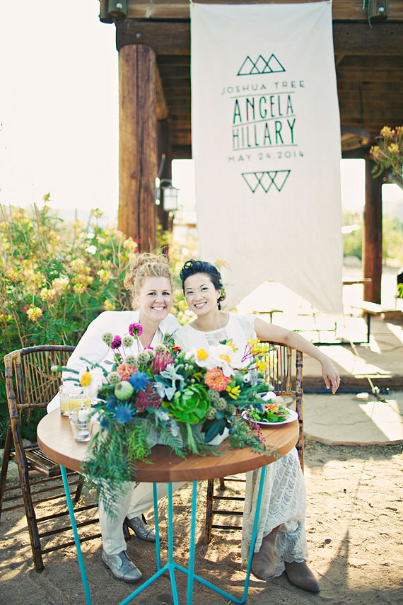 Photographer: Amelia Lyon / Videographer: Graham Lovelis of Grimace Films / Venue: Rimrock Ranch, Pioneertown, CA / Event Coordinator & Florist: Hello Gem Events / Hair & Makeup: Nicole DeAnne / Invitation Designer: Hello Gem Events / Cake: Sweet and Saucy Shop / Catering: Katherine King Catering / Rentals: Signature Rentals & Yeah! Rentals / Band: Lucky Devils Band / Shuttle Service: Cardiff Transportation / Angela’s Dress: Nightcap from Hawthorn at Padaro Beach, Carpinteria, CA / Boots: Frye / Hillary’s Jacket & Blouse: Theory / Pants: Zara / Shoes: Madewell / Gemstone Necklace: Hawthorn / Engagement Ring: Single Stone / Angela’s Engagement Ring & Both Wedding Rings: Sethi Couture