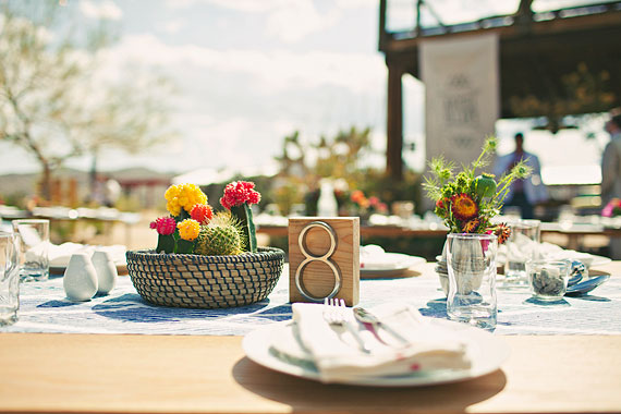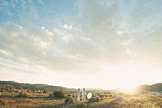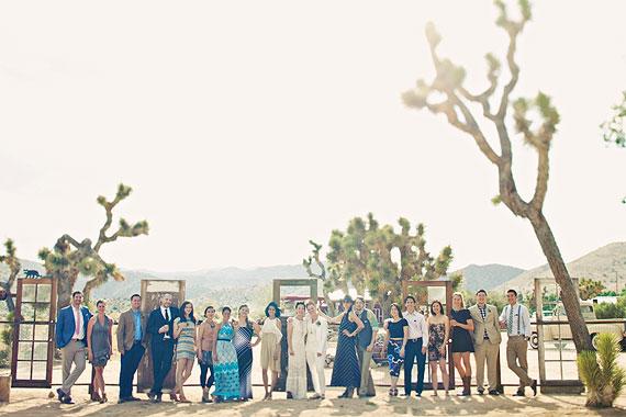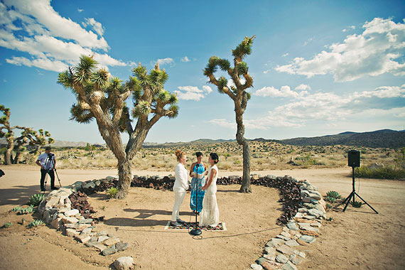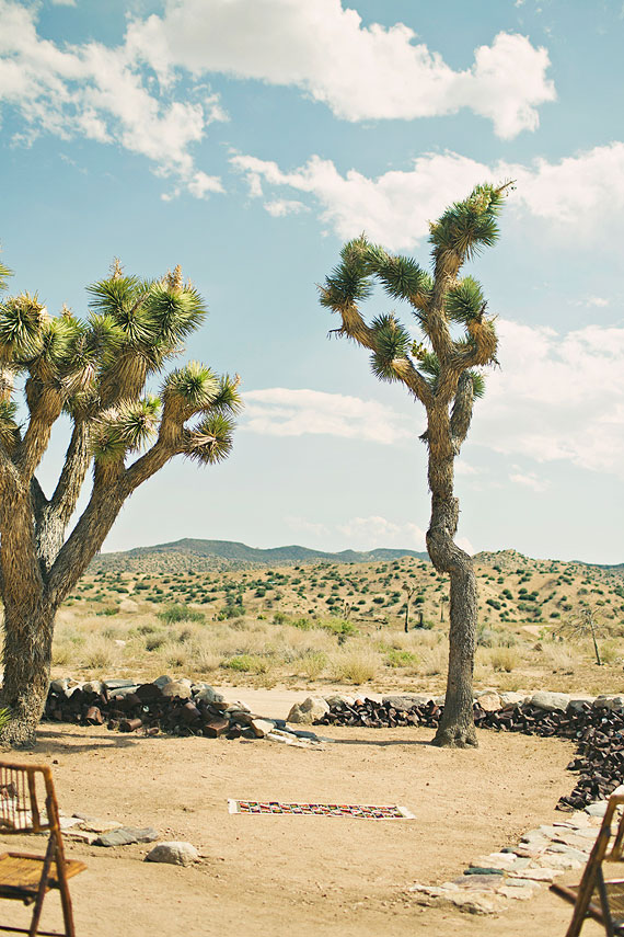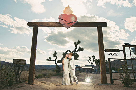 Maybe it’s the fact that the desert is only a hop, skip, and a jump away from us here in LA, but the Joshua Tree landscape just gets us every time. Same goes for Angela + Hillary. Their love of the desert + historic Pioneertown inspired a rustic-chic wedding with gemstones, cowboy boots, cacti, and eclectic pops of color.