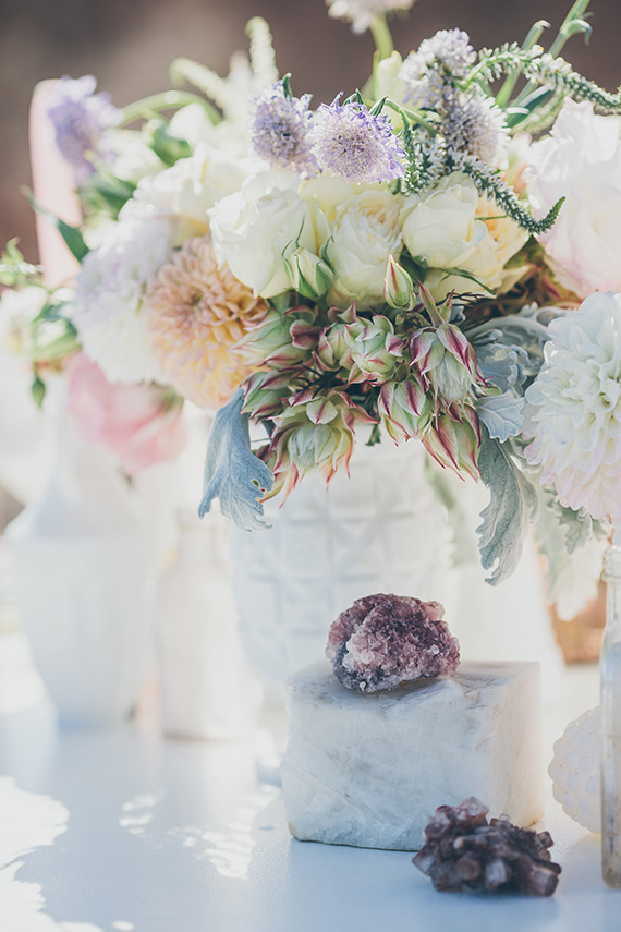 Pastel florals + white milk glass + raw minerals… Obsessed.