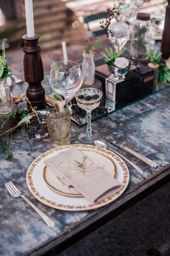 Vintage + antique pieces blended with greenery and china makes quite the storybook table scape.