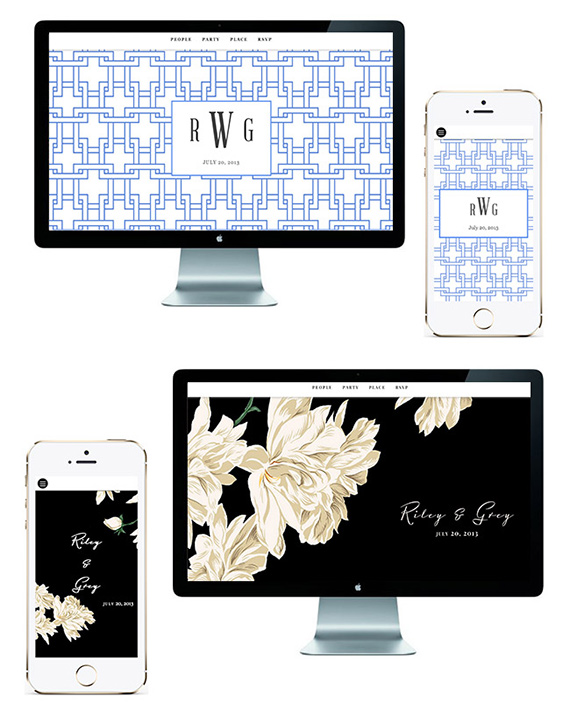 They’re rolling out a bunch of new color options, starting with the designs below, so you can choose whether to go with a sleek, modern black look or a more playful vibe—whatever you’re into. As always, each website is armed with constant customer service and other helpful features including the ability to collect guest addresses, manage RSVPs, and more.