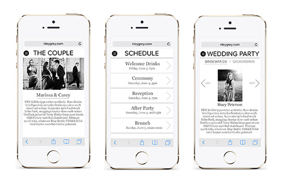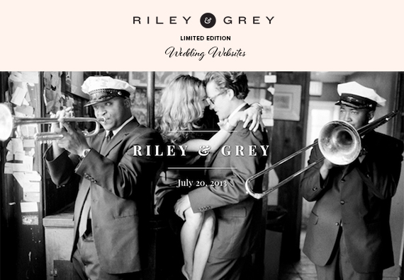 We’ve always loved the pretty wedding website designs that Riley & Grey offers, so we were pretty pleased to see that they recently launched a little somethin’ new to make them even better. With the new features, you’ll get an even more customized version of Riley & Grey‘s classic luxury, fashion- and design-inspired websites created to reflect a couple’s personalized style.