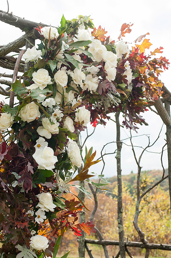 Dying over this floral arch! Props to Mimosa for mixing in even more fall foliage (we seriously can’t get enough) with those fresh white perennial blossoms.