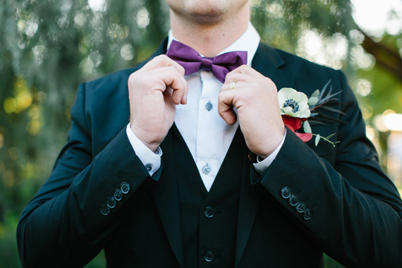 A romantic side pony + a berry lip to complement her Jenny Packham gown.