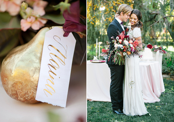 There are about a million and a half things to swoon over in these photos by Alyssia B Photography + Brooke Bakken Photography. Let’s see, there’s the luxe gold décor that takes your average autumn soiree up a notch, there’s a Jenny Packham beauty to fall in love with all over again (and again), and then there’s this set of show-stopping florals. Yeah… You get the idea!