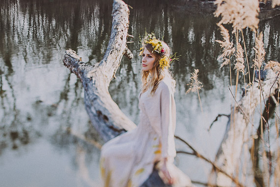 Photographer: Roland Faistenberger Photography / Location: Lobau, outside of Vienna / Flowers: Blumen Stieber / Hair & Makeup: Carina Bauer-Unzeitig of Feengleich Makeup Artistry / Paper Pieces: Papierhimmel / Dress: Stefanie Grissmann, Whatever Eye
