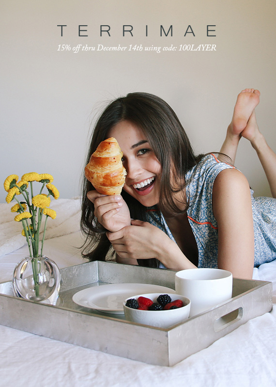 And now a little somethin’ for 100 Layer Cake readers! Snag 15% off all Terrimae orders through Dec 14 with code 100LAYER.
