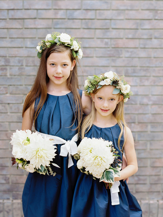 Heather looked stunning in her iconic Reem Acra gown (Remember when Olivia Wilde wore it to the Emmys?) and the navy bridesmaid dresses were a collaboration between her and her sisters. They designed them and her mom brought them to a family friend to sew.