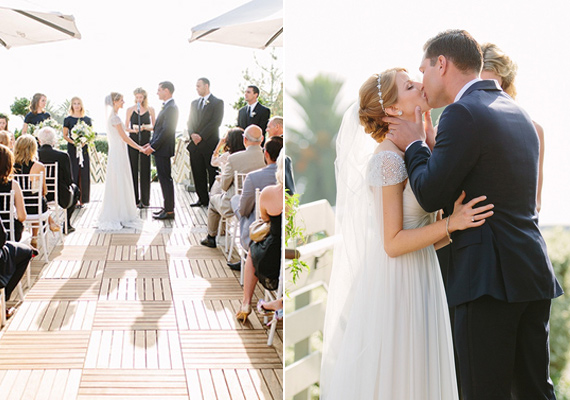 Photographer: Shane and Lauren Photography / Venue & Catering: L’Auberge Del Mar / Wedding Coordinator: Krissie Simek of White Lace Events & Design / Florist: Sweet Marie Designs / Hair: Jennifer Hoffman of Hair by Jenn / Makeup: Dina Nast of So Cal Hair and Makeup / Invitations: Nic. Roc. Designs / Cake: Hey, There Cupcake / Lighting: Fuller Lighting / Party Poppers: Souvenir Suitcase / DJ/Entertainment: The Creative Music DJ / Bride’s Gown: Reem Acra / Shoes: Badgley Mischka / Bridesmaids Dresses: Designed by the bride and her sisters, made by a family friend with fabric from Mood Fabrics / Shoes: Jimmy Choo / Groom’s Tuxedo: J. Crew Ludlow / Shoes: Salvatore Ferragamo