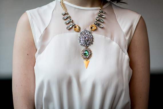 Showing a variety of attire was a huge focus for this shoot. They opted for this amaze silk &FORLOVE jumpsuit, a glittery emerald cocktail dress, and several takes on classic suiting in order to offer a little something for everyone.