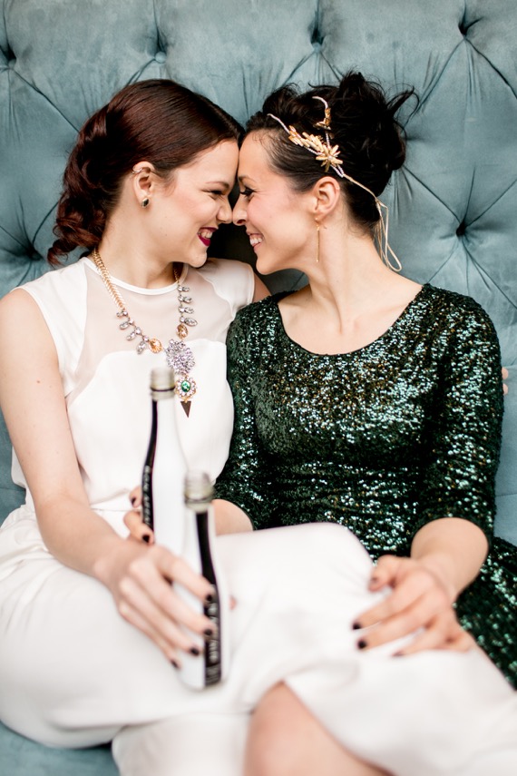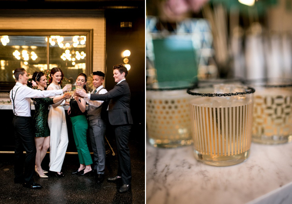 Kate of H&H Weddings is always looking to dispel stereotypes and create beautiful things in her work. She dreamed up these holiday wedding ideas out of a vision for an art deco style editorial featuring a dapper group of women enjoying a NYE happy hour. Along with Color Pop Events, she rounded up six gorgeous models + 20 vendors to show off a range of clothing styles and holiday décor to influence literally anyone looking for a little holiday inspo for their event!
