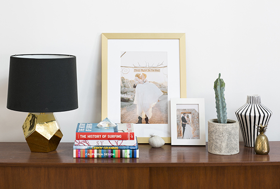 Totally up to you… But we went for gold + black accents alongside the framed photos.