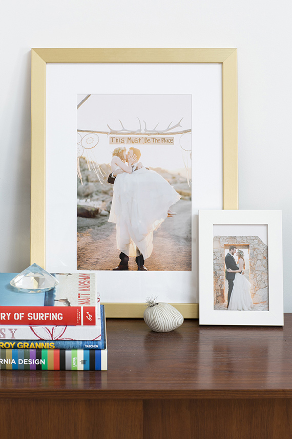 We chose this charming desert wedding to put on display in our frames, starting with the Mercer modern black frame. This is definitely a good one if you like clean lines and neutral décor.