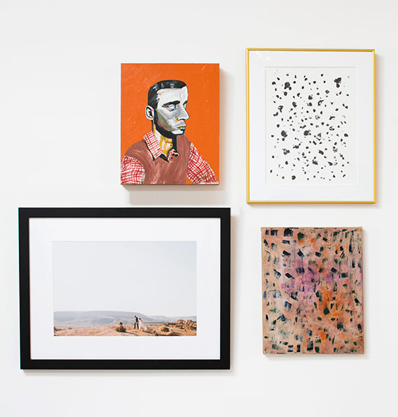With Framebridge, you’re able to get several different styles to show off at once, like the Culver brushed gold frame + Irvine modern white frame.