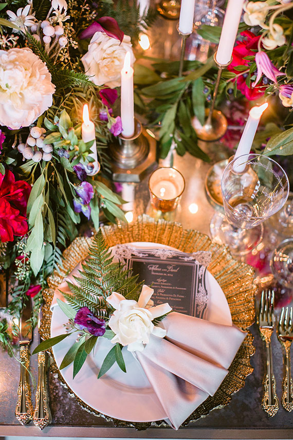 Samantha says, Moody, Romantic, Lavish… The 3 simple words that drove this styled shoot into becoming what it is. It was the perfect juxtaposition of modern and old world. There was no picture that we saw or theme that we wanted to replicate. Our ultimate inspiration was simply to create something unique and different not only for brides, but vendors, designers, and everybody in between to become enthralled with what has been created. Our incredible team of vendors brainstormed together, each throwing in different elements they thought would be a good fit, and it came together seamlessly.
