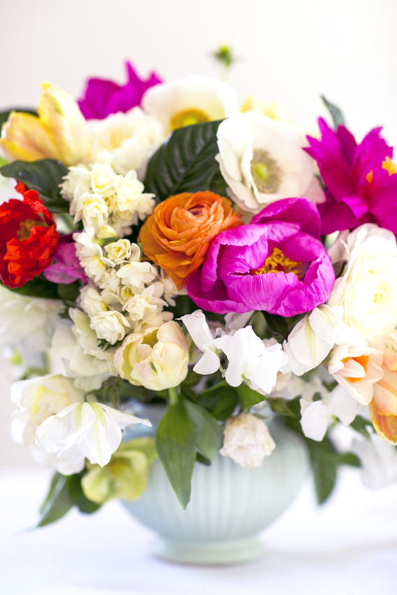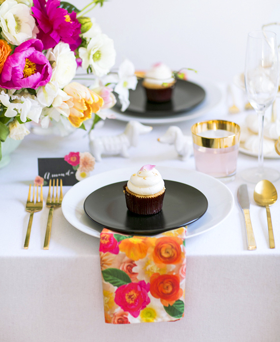 Yesterday we shared how we made these fun floral print napkins using the HP Sprout and a site that prints custom fabric. And today we’d love to show you some ideas for a spring-y, floral wedding or bridal shower inspired by the pattern we created.