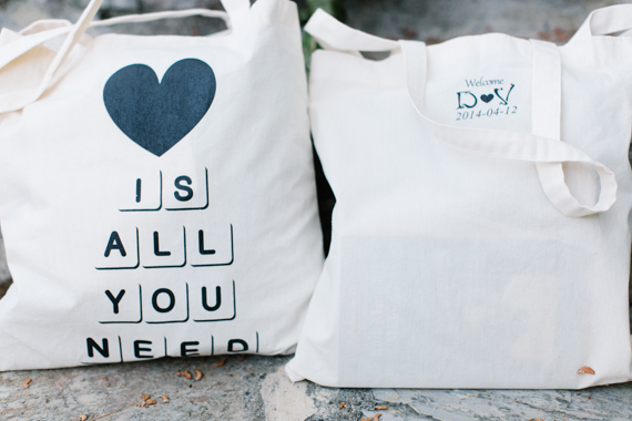 Custom guest totes and hotel goodies: room keys with the wedding logo, hangover kits, daily pillow chocolates, vintage hankies, starfish flip flops by Damla’s mom, and pashminas in case guests got cold during the ceremony.