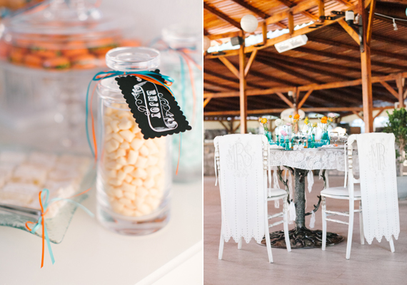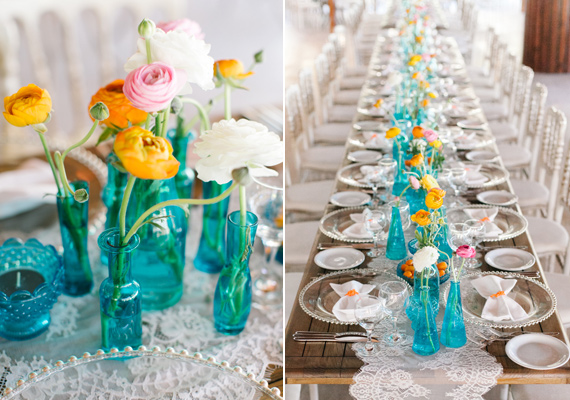 Isn’t this scene amaze? Damla had her heart set on a certain shade of turquoise, and when they couldn’t find it, they decided to buy clear vases from Ikea and dye them.