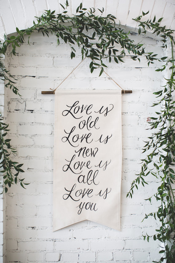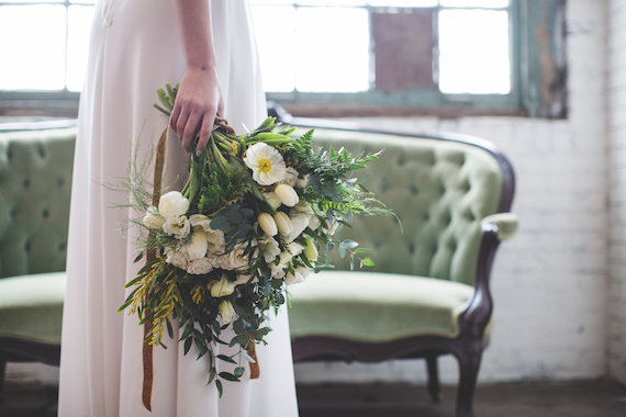 Fresh greenery, simple romantic calligraphy, and subtle sweets make up the recipe for today’s vintage-inspired shoot. Dana + Keren, the gals at Your Wedding Project brought organic, vintage touches to Found and Made Co.’s fresh warehouse space (which is available for studio rentals, Pittsburg creatives!). With a juxtaposition of high industrial windows, cement accents, and metal against the antique sofa + thrifted décor, we’re super into all the charming touches below…