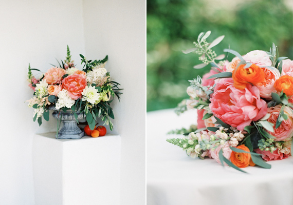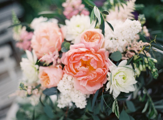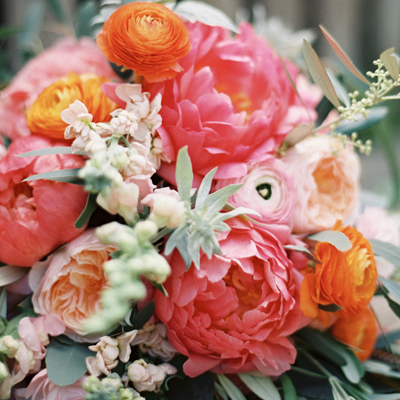 The Rose Shed whipped up bridal bouquets to cater to both ends of the spectrum: a bright peony bouquet with ranunculus and snapdragons, and a simple white bunch of buddleia to contrast.