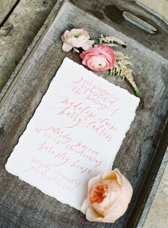 Photographer: Sarah Hannam Photographer / Venue: Barnsley House Hotel & Spa / Stylist: Jessie Thomson / Assistant Stylist: Georgia Westwood / Mentors: Ashlee Taylor Photography & Holly Rattray Photography / Floral Designer: The Rose Shed / Hair: Nicholas White / Makeup: Nina Norman / Stationery: Juliet Grace Design / Cake Designer: The Natural Cake Company / Table Flatware: Helene Millot / Linens: To Dine For Linens / Bridal Boutique: The White Rose Bridal / Bride’s Gown: Johanna Hehir / Maids of Honor Dresses: Maids to Measure / Hair Accessories: Kelly Spence / Jewelry: Astley Clarke