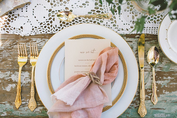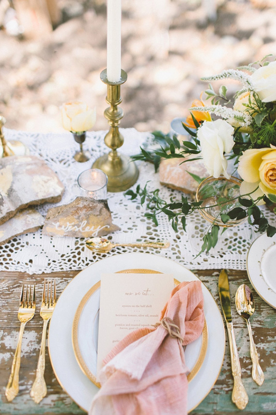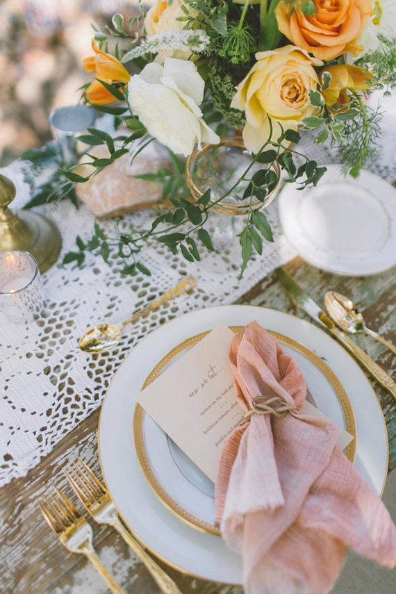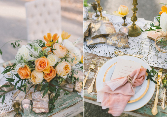 It all began when stylist Vanessa of Vanessa Noel Events decided to finally make use of a terra-cotta chiminea that she’d been holding on to long after it was broken. The aged fragments and colored layers inspired a styled shoot at Whispering Rose Ranch with warm tones, textures, and contrast. The ranch setting made the best fit, if you ask us.