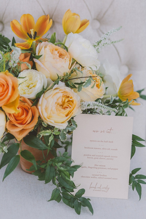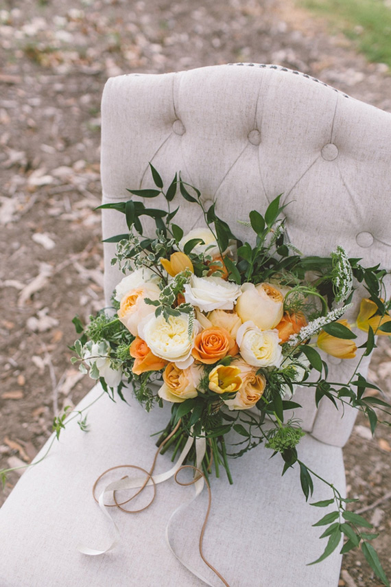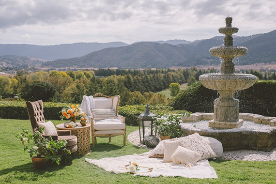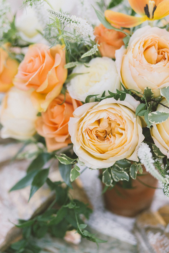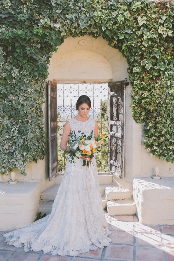 Anna says, Here in Southern California, our summer and fall seasons often blend together quite seamlessly… no white after Labor Day doesn’t really apply to us! Vanessa wanted to use terra cotta and layers of neutrals to create a sun-drenched color palette that felt like late summer flowing into fall. We were ecstatic to shoot at Whispering Rose Ranch where the inspiration of terra cotta pottery meshed beautifully with the Spanish revival style of the ranch.
