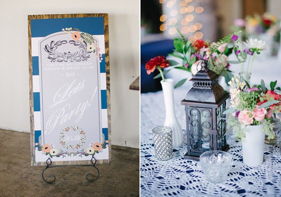 We drew our eclectic inspiration from timeless vintage pieces such as heirloom silver platters, mismatched milk glass, countless dainty teacups illuminated with candlelight, oil burning lamps and vintage lace tablecloths and doilies. We curated all of the décor and flower vessels either from family members or local antique stores. I had dreamed of planning my own wedding ever since I worked at a bridal shop, and I began the long process of piecing my dream together. Our main color was navy with accents of mercury glass and fresh blooms. The florist Emerson Events & Design was someone who I always wanted to work with, and she made my vision come to life.