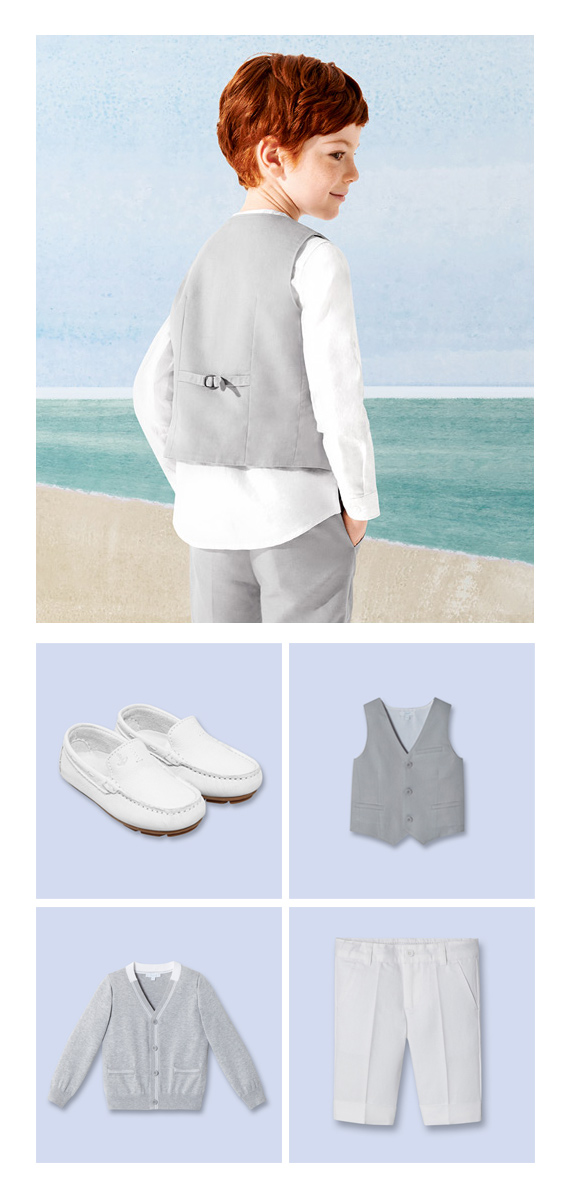 Jacadi’s Exceptional Moments Collection of celebration clothing for girls and boys is full of options for the littles included in your big day. Pulling from three popular collections, Souvenir de Famille, Poesie d’Ete, and Promenade Bucolique, they rounded up their best flower girl and ring bearer fashion. For the girls, there are full skirts, boleros, and pleated dresses, to name a few pieces. For boys, cotton pique dress shirts, button down vests, and tailored dress pants.