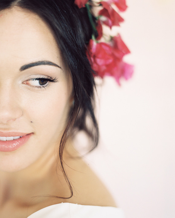 The past few days have really proven what a tiny team with loads of talent can do. Yesterday’s cake inspiration was comprised of just three vendors, and today’s has four (contributing one dreamy Tinge Floral bouquet + film imagery from Travis J Photography to start). Not only did these guys come up with a most romantic combo of florals and film to inspire you, but a lovely bridal look, soft hair and beauty, and even a DIY backdrop anyone could recreate for their big day: