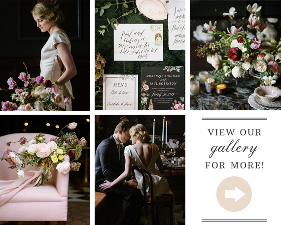 Doesn’t a Monday eve of wining and dining by candlelight and an assortment of dramatic florals enveloping you as you sit down to your meal sound kinda way better than anything else right now? Sigh. We officially believe that any wedding inspired by this shoot would be one for the books. With a contrast of soft and dark at play, not to mention the rose prints adorning the walls at FINCA, pretty sure you’ll want to pin every one of Heather Nan’s photos!