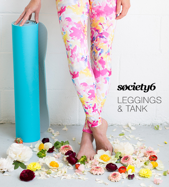 Naturally, the fashion is kind of a big deal to us. Society6.com’s new leggings collection is the perfect way to practice (or dress) in style. They have thousands of artist-designed patterns available on their site, like this pretty floral pair our own Kristina is wearing above. Each winner will choose a pair of patterned leggings and a tank from their huge catalog of designs.
