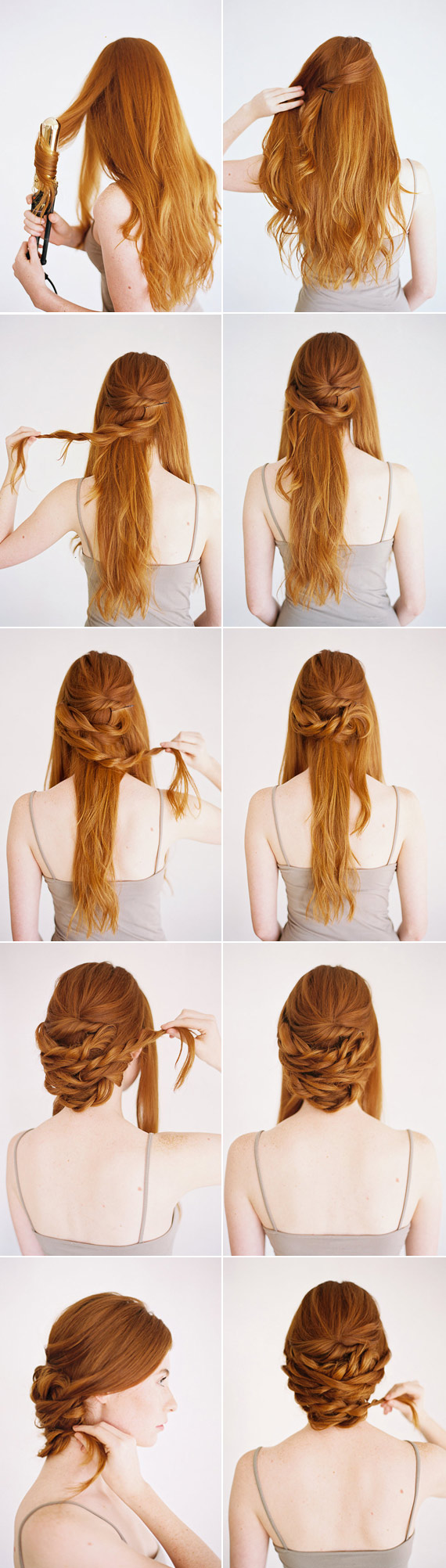 Given that you alternate the twists all the way down, it would be easy to tweak for different lengths. Be sure to browse our hair + beauty section for more bridal hair tutorials.