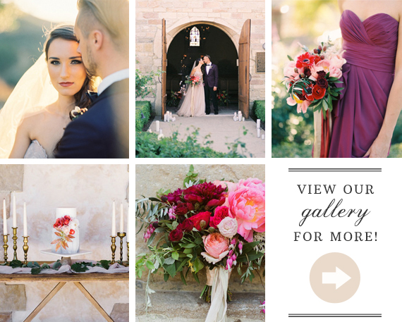A few lessons from today’s Tuscan wedding inspiration: 1) Italy can, in fact, be brought to California, 2) Food can be as pretty as flowers, and 3) Little cakes can be as impressive as big cakes. (Though you may already know that last one if you’ve seen our wedding cake gallery.) Tres Chic Affairs + Third Bloom + a whole slew of talents made each of those happen + more over at Cal-a-Vie Health Spa in Vista.