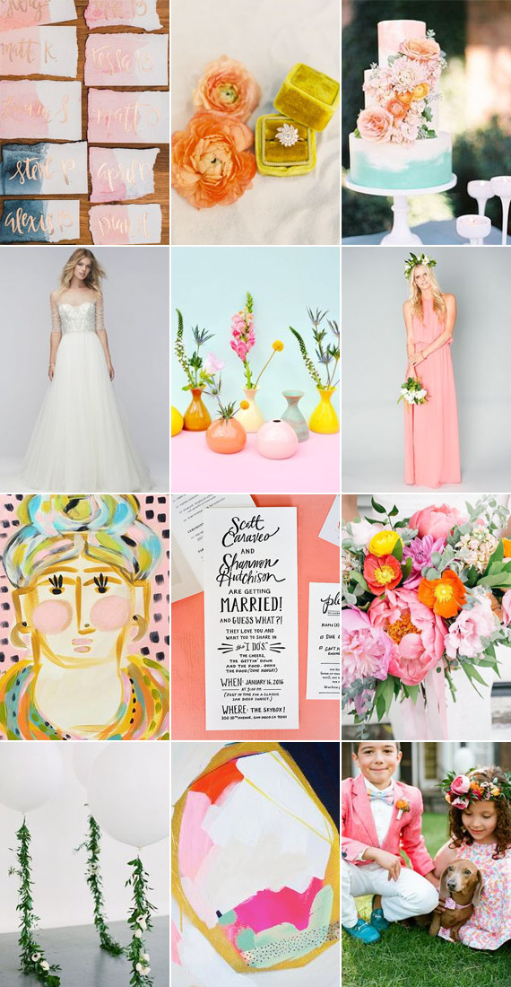 The main inspiration for our wedding Pinterest board is us as a couple! I want to combine both of our styles into our wedding design aesthetic. I personally love mid-century modern anything. I envision pops of bright colors, fun geometric patterns and modern lounge groupings. Billy leans towards a more organic, natural style… Think rustic farm tables, stone/brick textures and lots of greenery! The two styles combined are even better together!