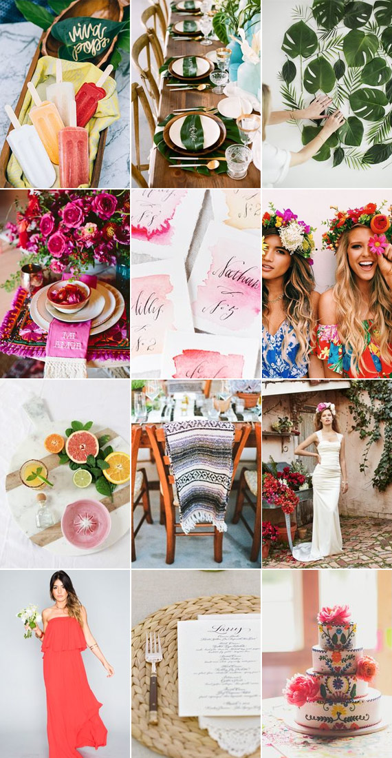 My main inspiration for the wedding has been relaxation! People can get so caught up in the wedding planning that they miss the best part – marrying the love of your life! We picked Los Cabos because of its beautiful scenery and overall vibe (plus we had a magical trip there where we first talked about the idea of marriage). My Pinterest board inspiration is directly drawn from the local aesthetic there! From breathtaking sunsets to hundreds of palm trees to crisp blue water, it all feels like one bright color palate to me! I love vibrant colors, citrus centerpieces, greenery, flower crowns, breezy dresses, colorful cocktails, and sprinkles of Mexican flair!