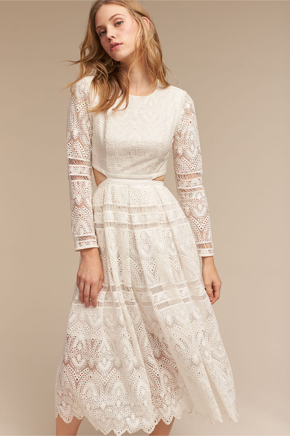 Or if you want to incorporate the graphic detail into a flirtier dress, you could opt for the Fallon Dress. Love the cut-outs and scallop hem… Great for a bridal shower or night on the town during your honeymoon.
