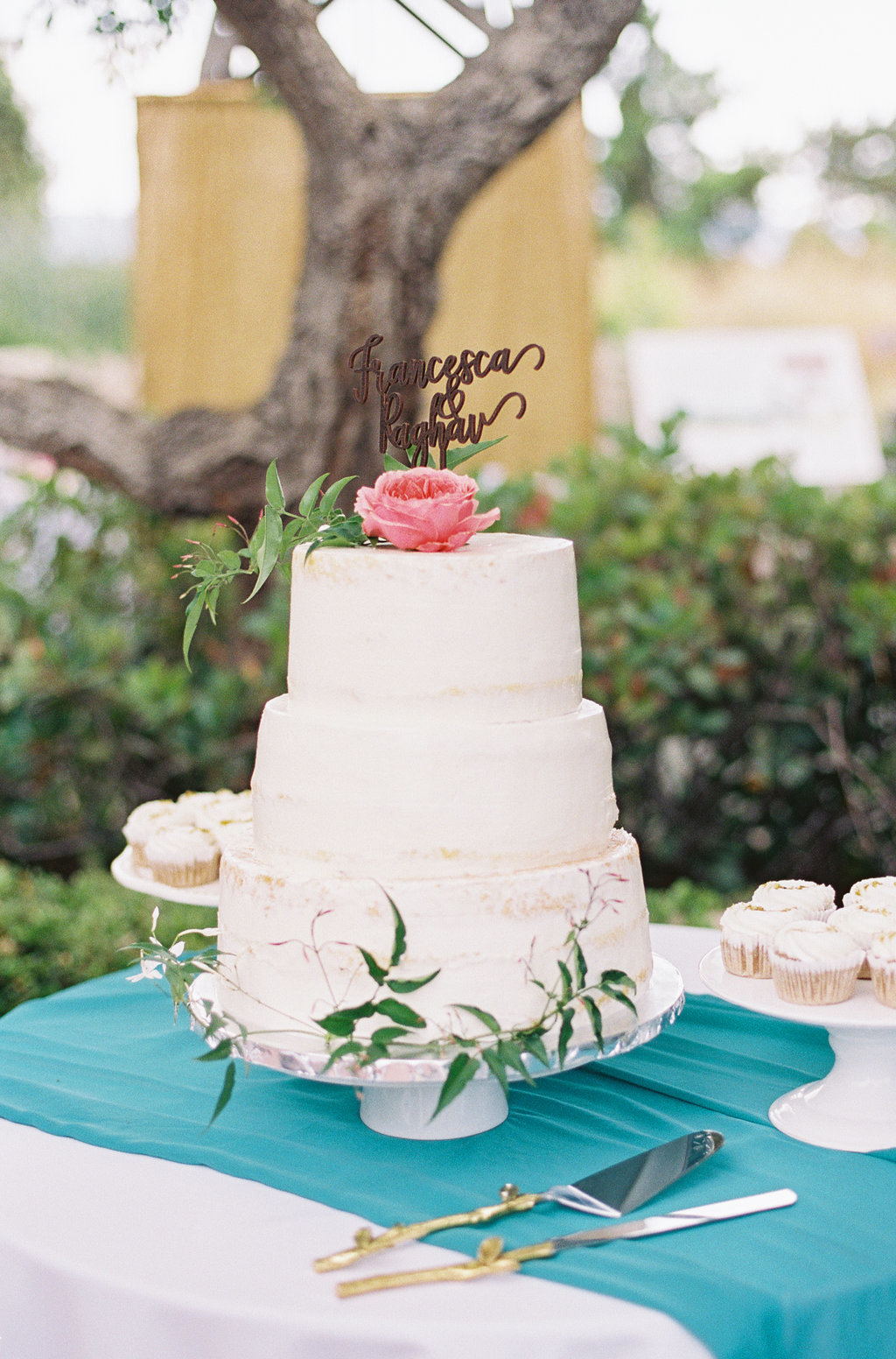 From the bride’s henna and jasmine flowers in her hair to their invitation suite created by Kelly Design Co, each detail was a beautiful union of their cultures. The lush, outdoor space at the Rengstorff House was the perfect summer backdrop for Francesca and Raghav’s intimate ceremony and backyard reception featuring farm tables dressed with white silk chiffon runners, gold-rimmed chargers, blush glassware, and floral centerpieces arranged by My Wedding Sense with fuchsia garden roses and peonies.