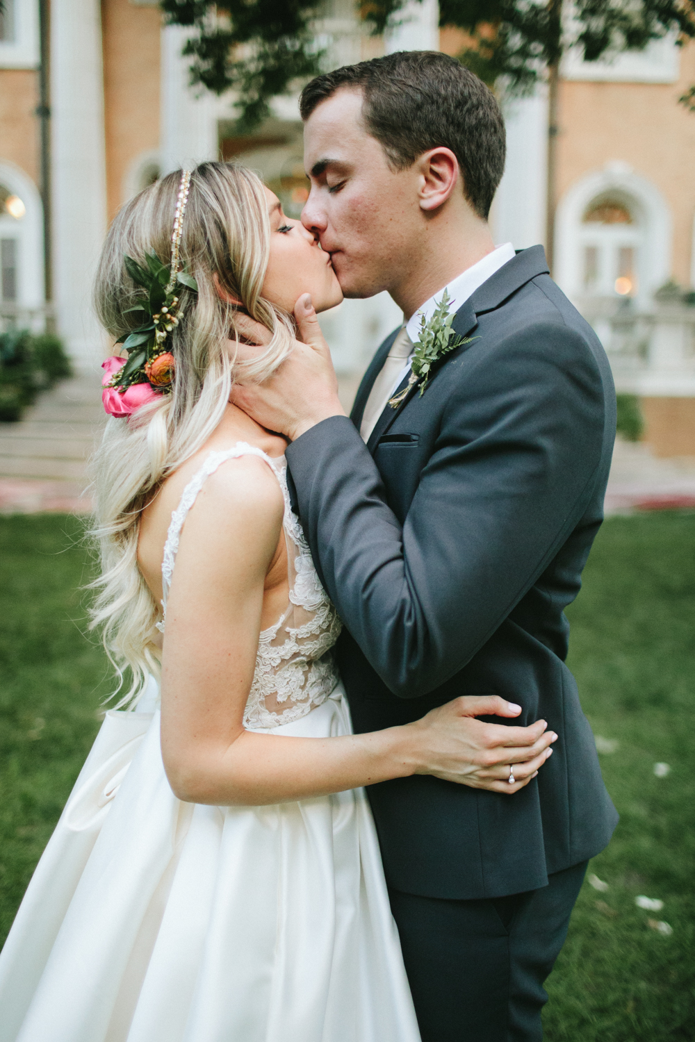 Whitney + Tanner met at college in Santa Barbara, so when on the venue hunt back in Denver, they knew they had to bring their California boho style to whatever space they found. From the moment they saw the historic Grant-Humphries Mansion, they knew they’d be able to channel California and Colorado for their 200 guests. Think nature, greenery, peonies, and boho glam. Pretty good muse, right? Thanks to our gal Paige Jones, who just so happens to be T’s sister, and Banks + Leaf for sharing!