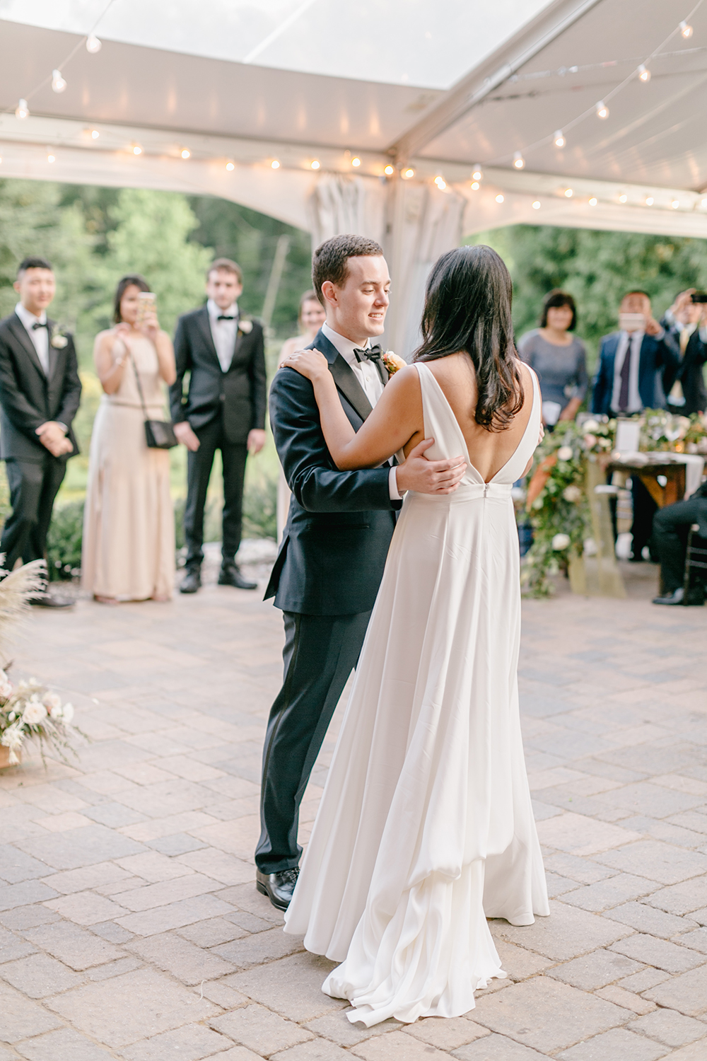 Photography: Emily Wren Photography / Venue: Tyler Arboretum in Media, PA / Florist: Oleander Florists / Hair & Makeup: MG Hair & Makeup / Invitations: Holdfast Industries / Cake & Catering: Jeffery Miller Catering / Rentals: Barnes Farm Tables / Band/DJ: Scratch Weddings / Officiant: Naila Francis of Journeys of the Heart / Bridal Gown: Alexandra Grecco / Bridal Cape: Leanne Marshall from Lovely Bride NYC / Shoes: Kenneth Cole / Rings: Polly Wales & Catbird / Makeup: Charlotte Tilbury / Bridesmaids Dresses: H&M / Groom’s Suit & Accessories: The Black Tux / Shoes: Charles Tyrwhitt / Groomsmen: The Black Tux