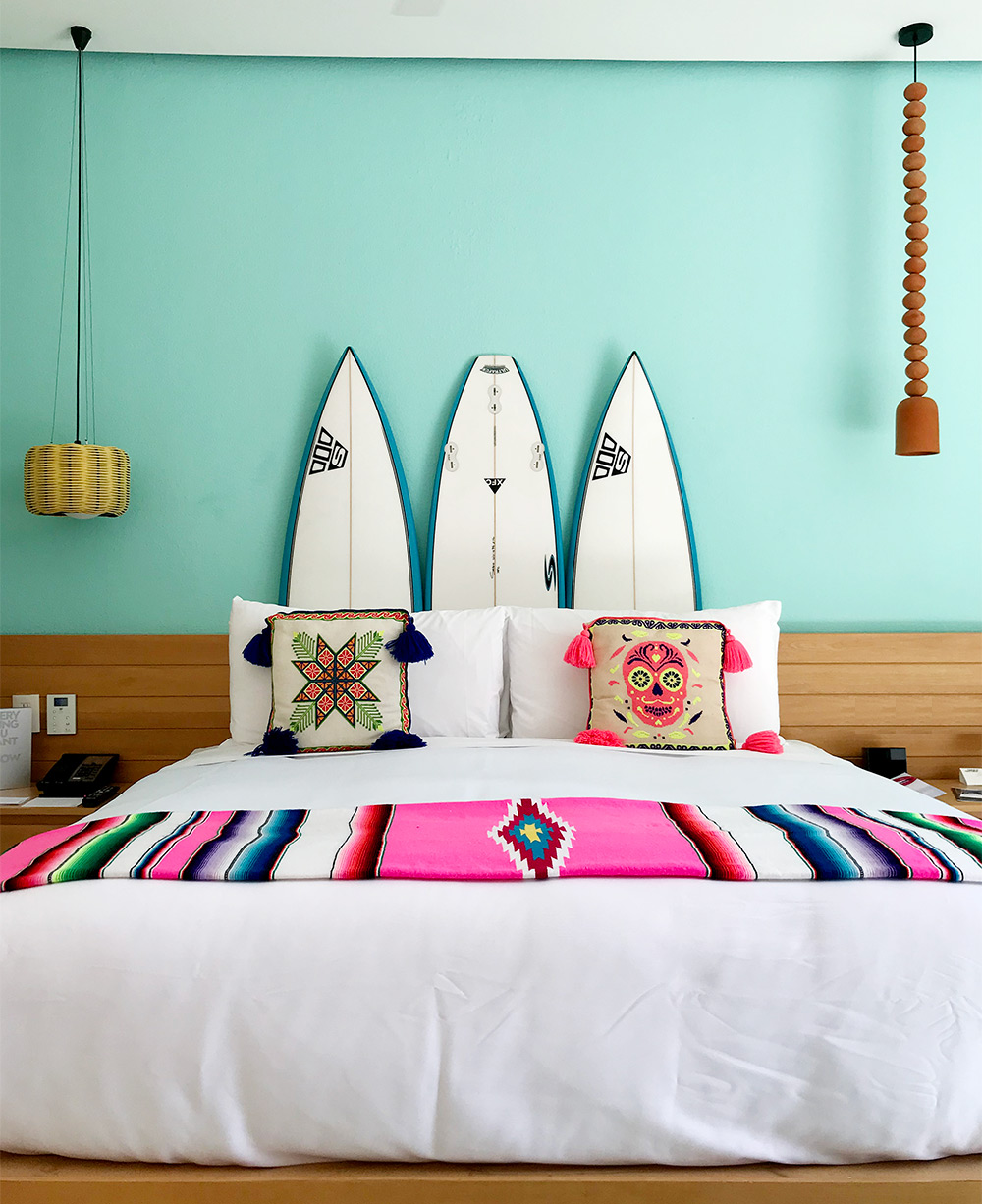 The rooms are so fun! Perfect surfer chic, indoor-outdoor, loads of beautiful light. And all of the art in the hotel was created by local Sayulita artists, which is a really fun touch.