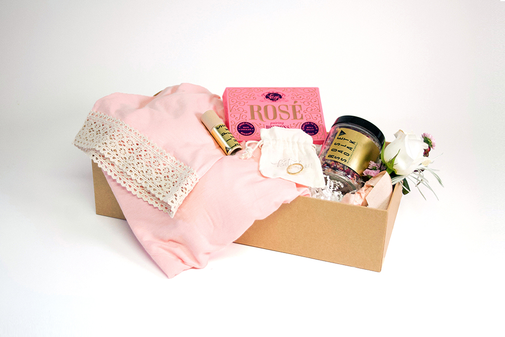 One of the best parts about this particular box is how custom each of these girlie goods are. You’ll get to choose from a selection of Love Ophelia bridesmaid robe colors and opt for a pretty Katie Dean ring that fits the recipient perfectly. What ‘maids don’t want a little something to commemorate this special season?