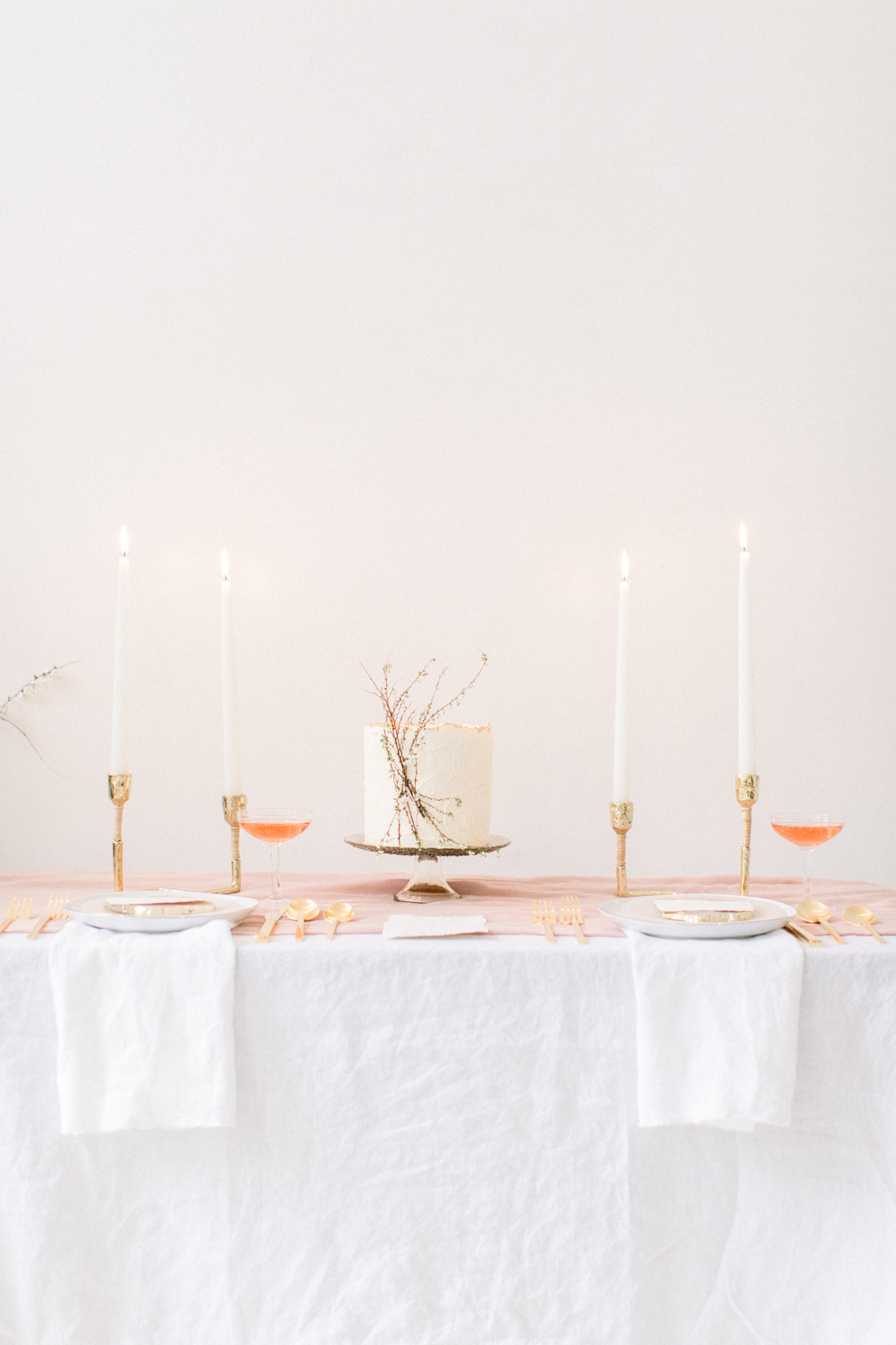 All of the tableware came from shops like West Elm, BHLDN, Zara Home, so you can easily create a blush + gold tablescape inspired by this look yourself.