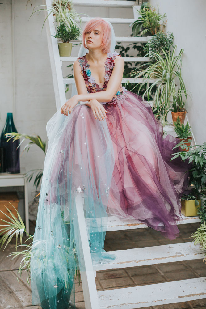 For a brighter look, we love the dip-dyed ombre peach in this House of Moirai gown documented by Lizelle Goussard Photography.
