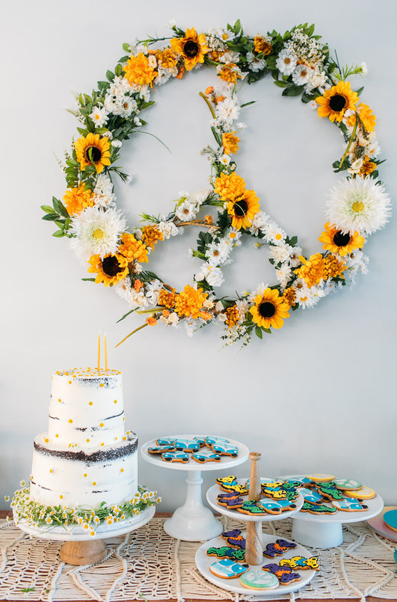 Plus that amazing floral peace sign wreath? Yup, she made it. And she posted a tutorial over there too!