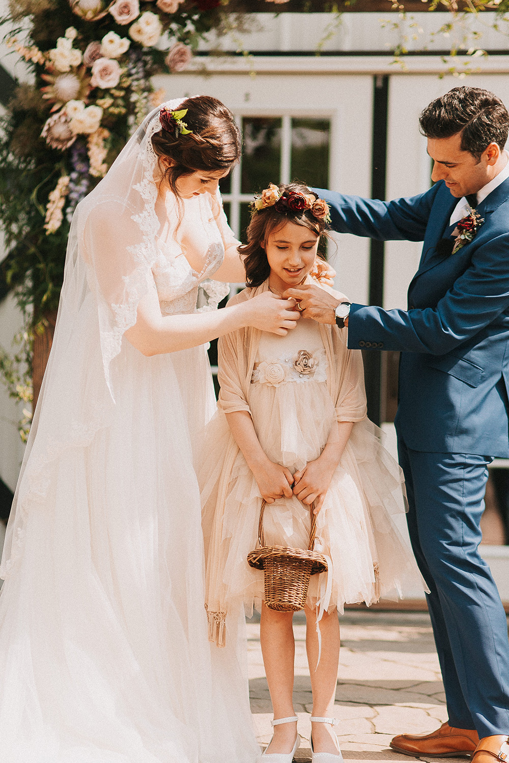 Anthony and I wrote our own vows and they were incredibly touching and sweet, but I really got emotional when addressing his daughter, Marlo. I wrote her vows and gave her a little necklace as something comparable to our wedding rings. Anthony and I know we love each other and want to be together forever, but I never imagined I could so deeply love a little girl who wasn’t my own. I feel like the luckiest woman in the world to get two loves of my life for the price of one. That moment really solidified our family.