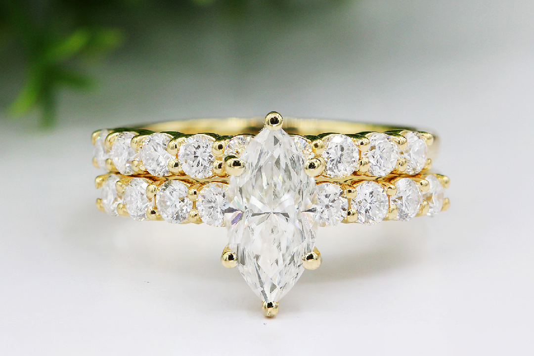 Some of their most-loved engagement rings are their moissanite engagement rings—all of which are made by Charles & Colvard as the finest available. Shown above is the Dazzling Forever One Marquis by Charles and Colvard.