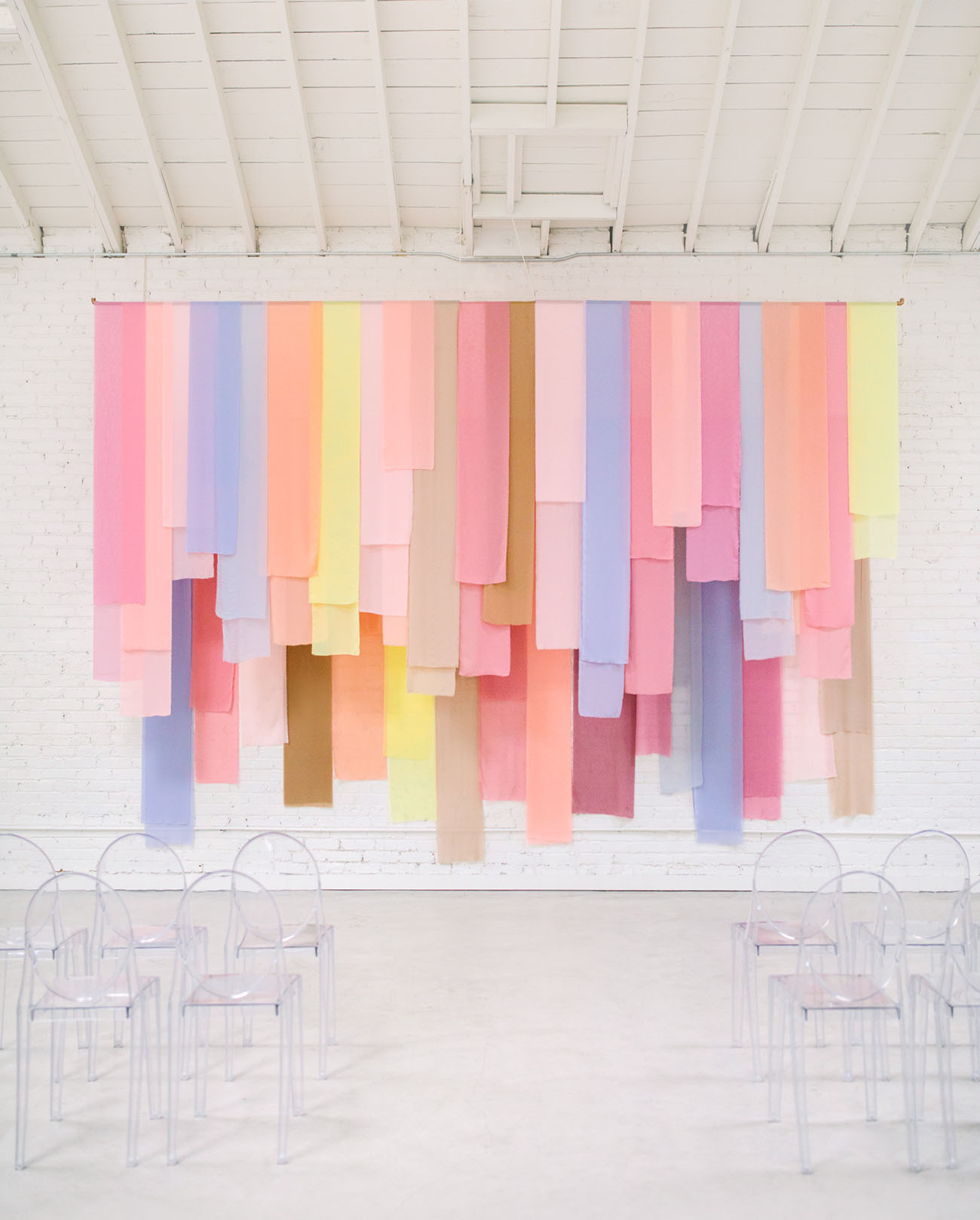 Such a playful, modern take on pastels in this ribbon backdrop from Shindig Chic and Harmony Creative. (Photo by Mary Costa Photography.)