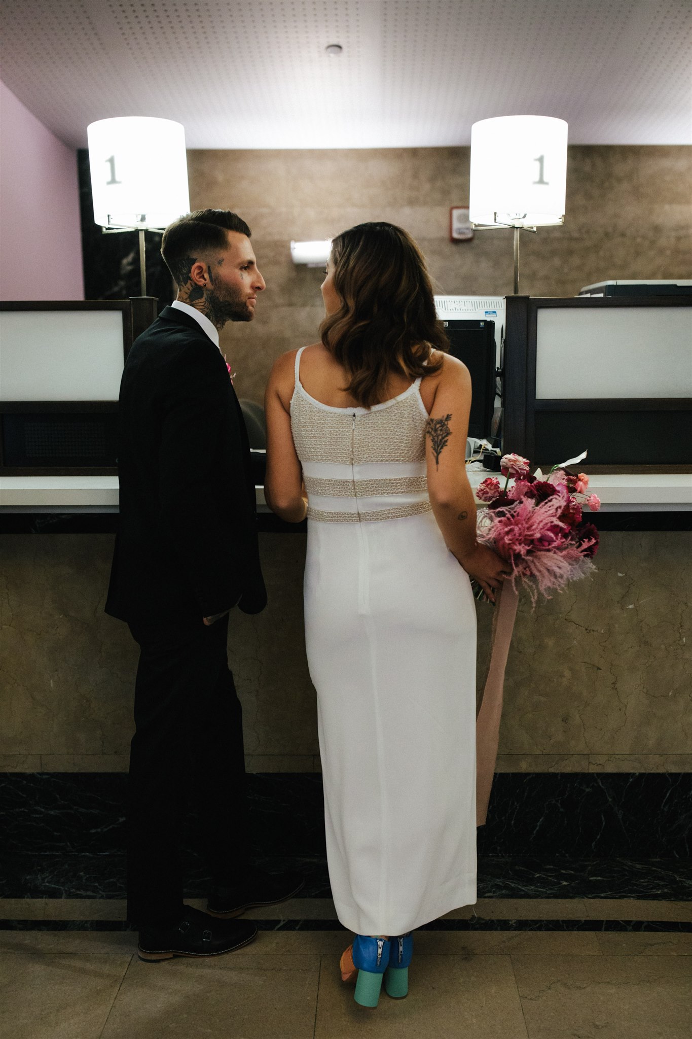 7. Embrace the chaos. There’s no way to guarantee wait time, which of the two chapels (decorated differently) you’ll get, how many other couples will be there (and will end up in your photos) or if it’ll rain. The not knowing is a lot of the fun of getting married at city hall, so once you’ve planned out the day, try to just let it all wash over you. (And bring a clear umbrella if it rains, for photos!)